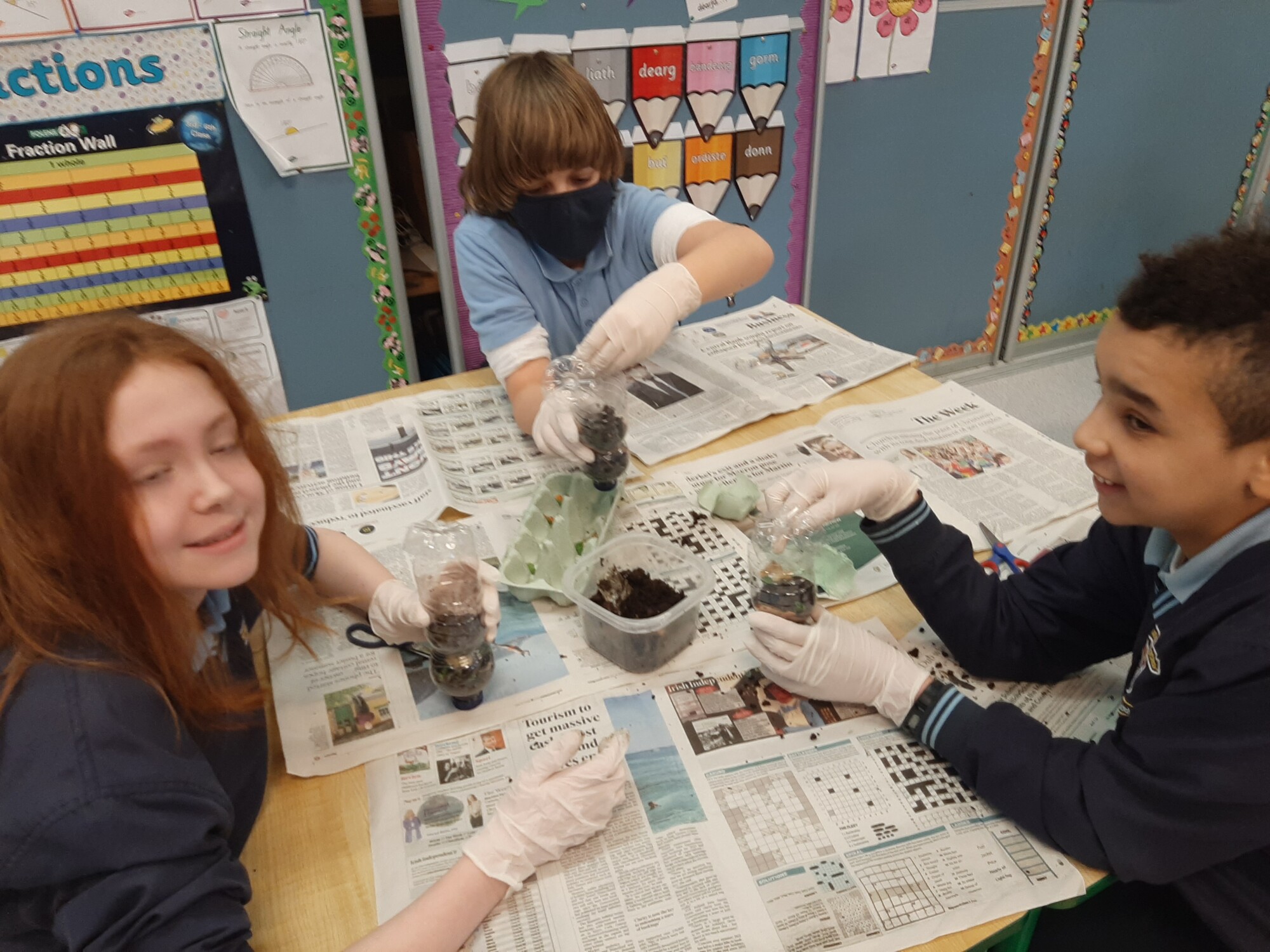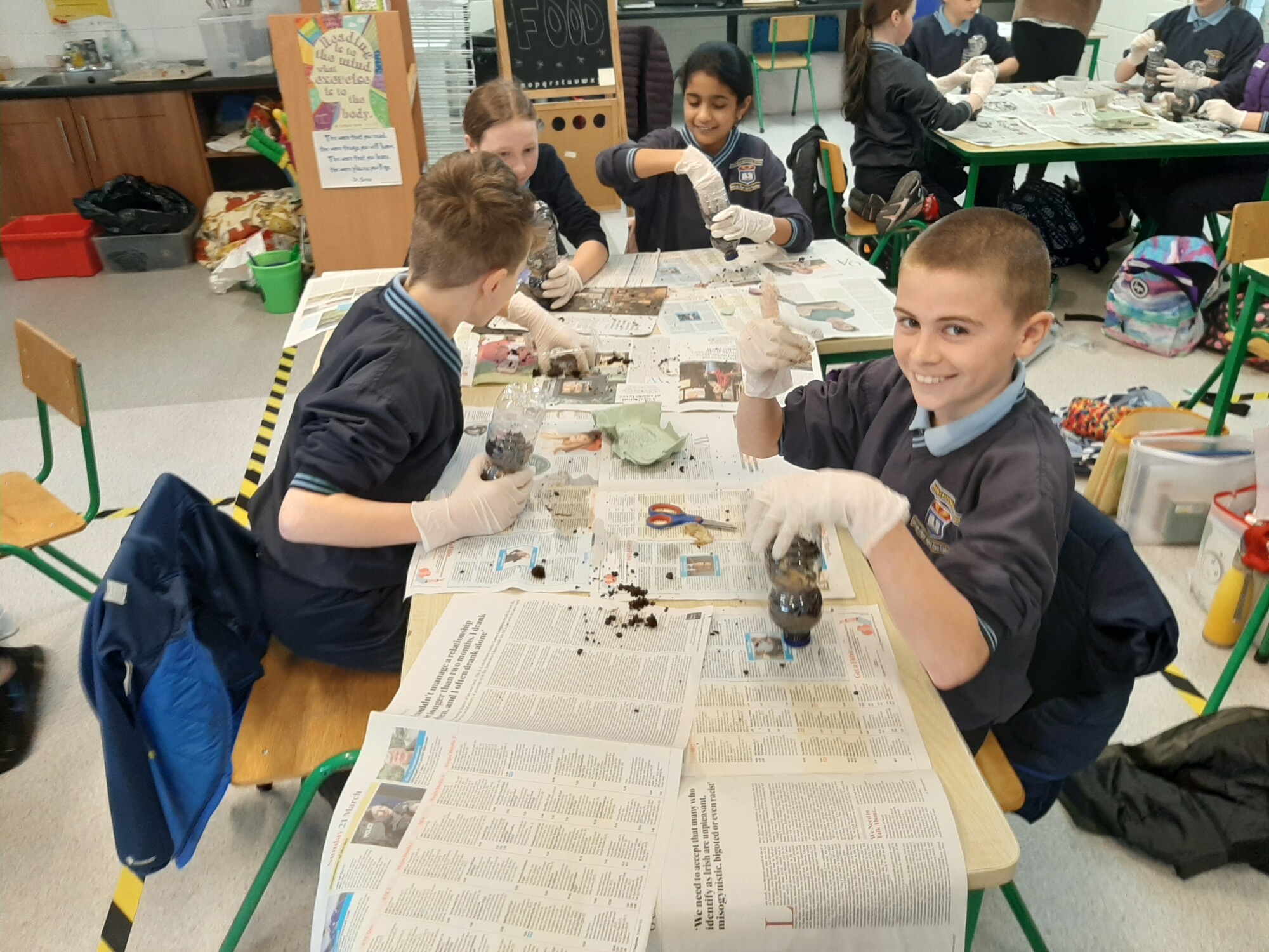 Our Rang V pupils had a most enjoyable lesson today, when they learned all about our Earth’s renewable and non-renewable resources. During this lesson, their teacher, Mr. Thynne showed them what compost is and how it is created. Our pupils learned all about the positive, environmental and commercial benefits of compost. Finally, they had great fun creating their own compost bottle.