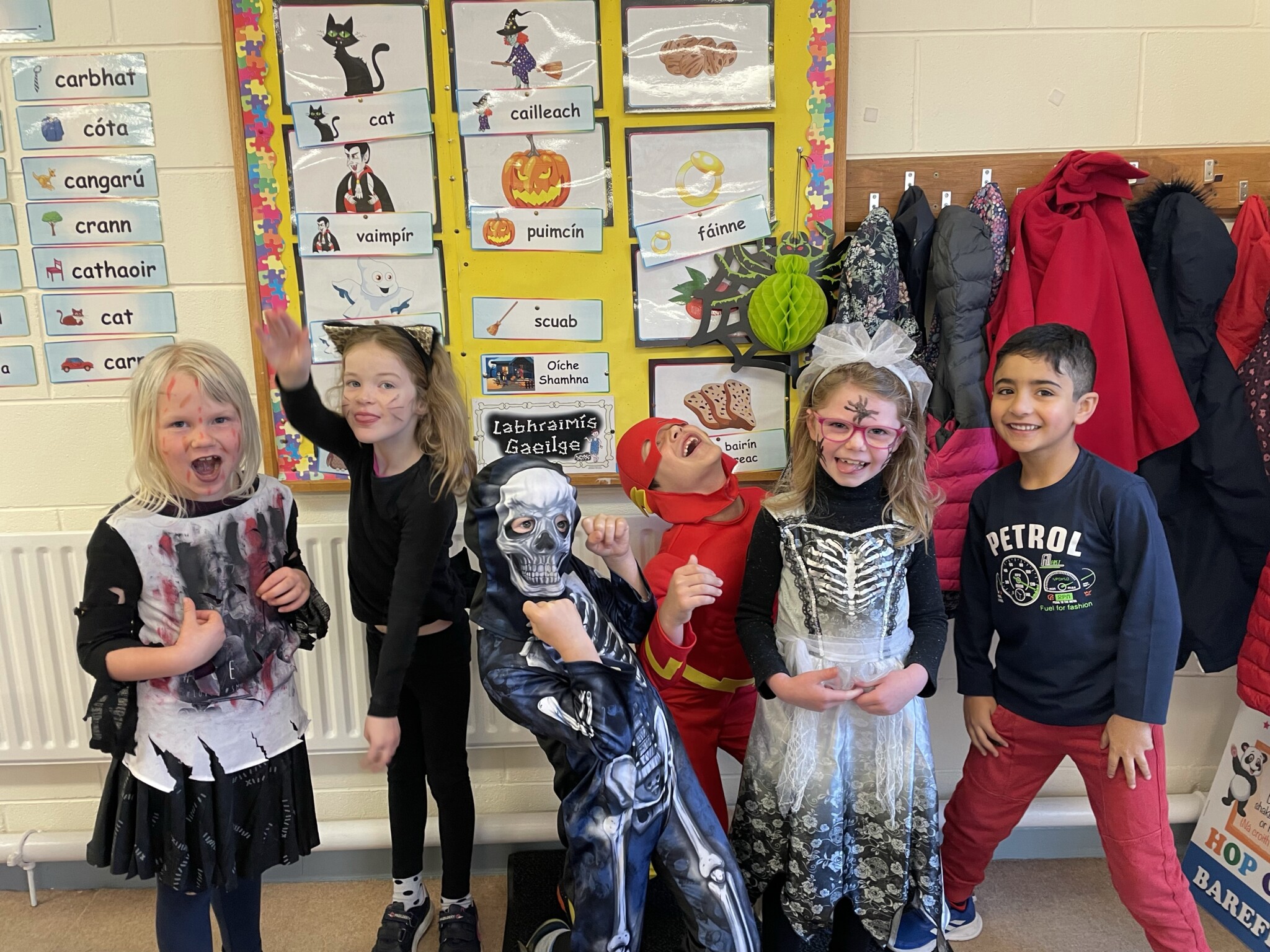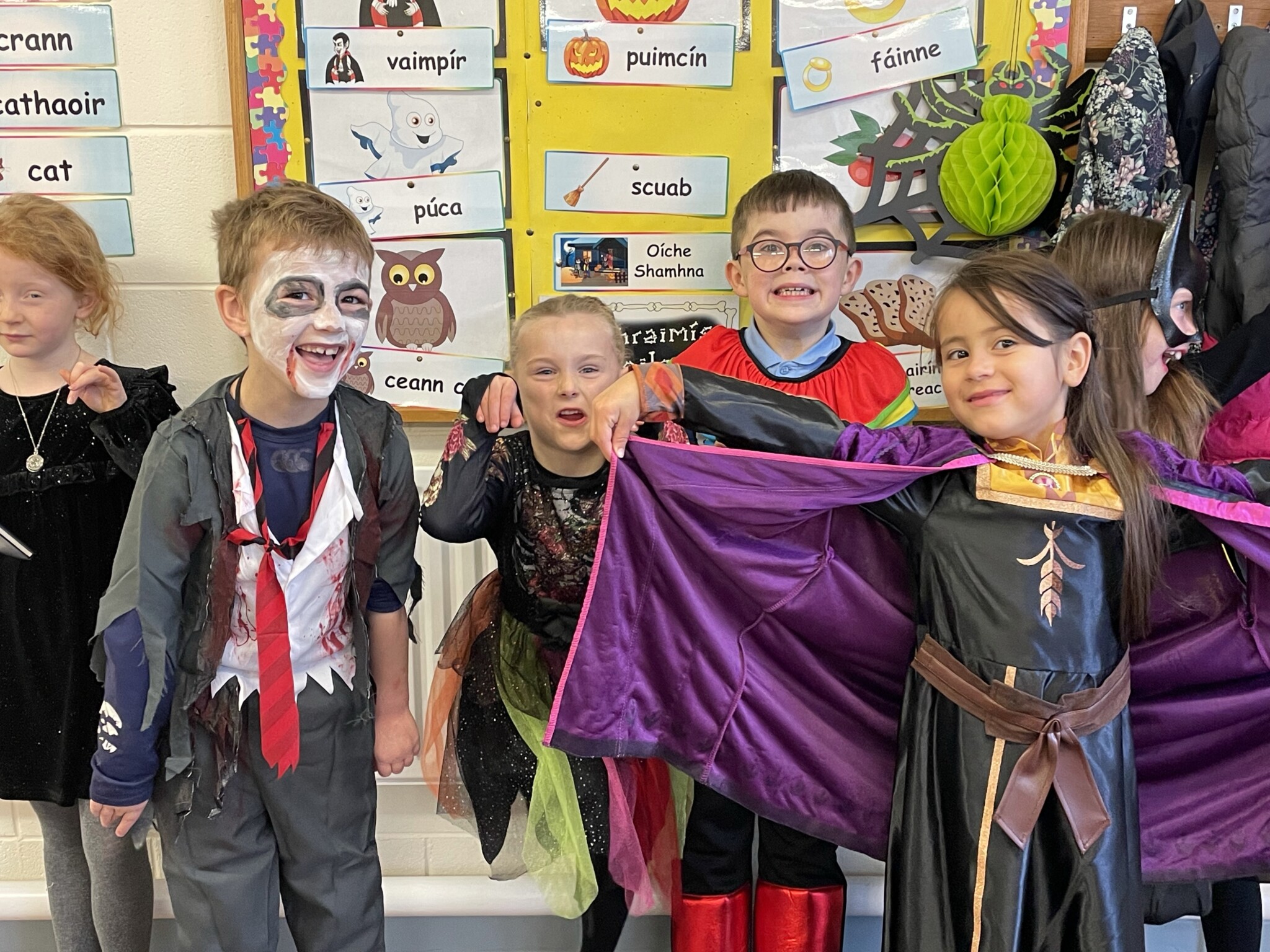 The boys and girls in Rang 1 looked fantastic today. I was almost too scared to open the door but then I heard the giggles and saw the smiles and knew it was my class. Great fun was had by everyone. Enjoy the mid term break and don’t eat too many sweets.