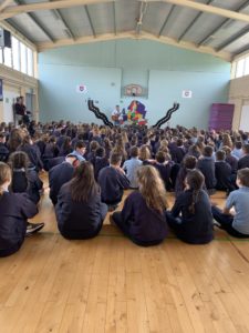 All the pupils in the school were entertained by the famous musician and song writer John Spillane. Chan siad amhrán leis. Bhí an t-am acu. A great experience for all the pupils in our school.