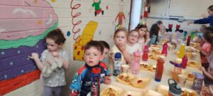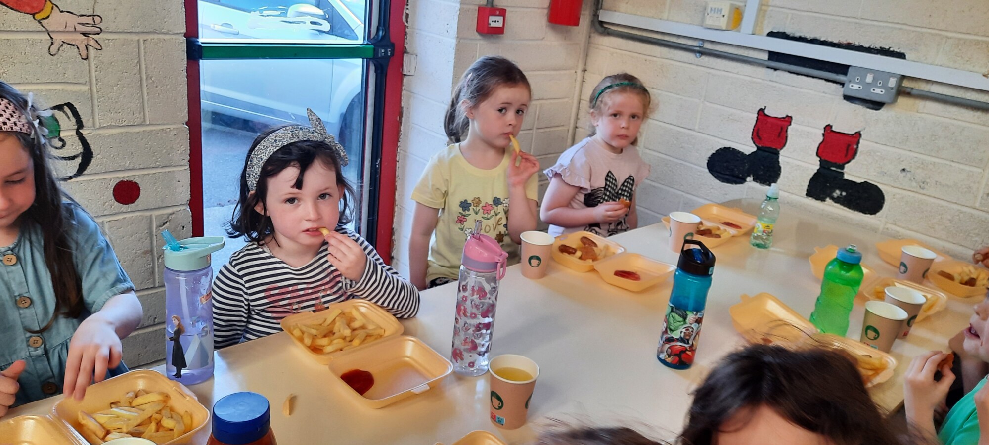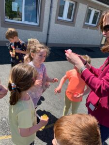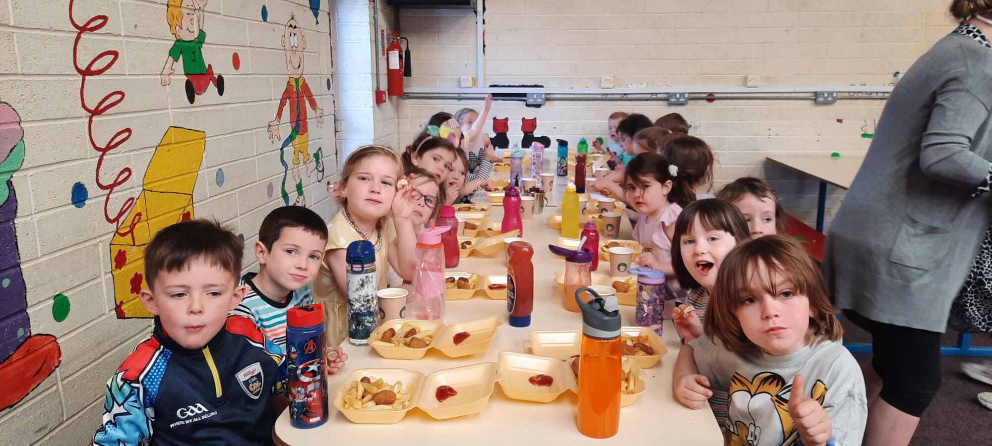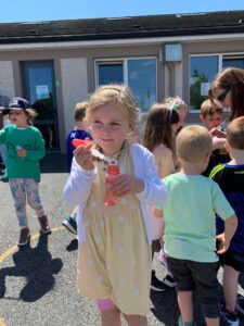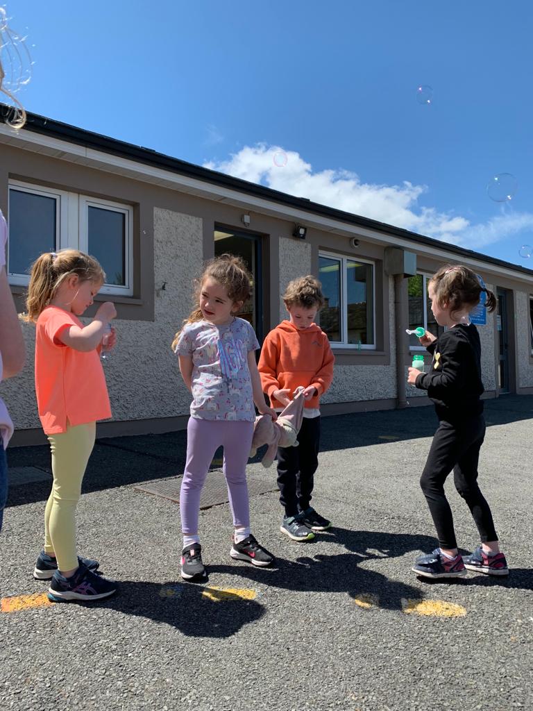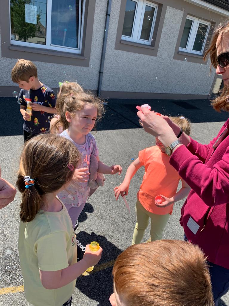 Junior Infants headed off on their first school tour today. There was great excitement! We went to Denis’ Den and everyone had a great time playing with all of their friends. We had some chips, sausages and nuggets there. When we came back to school we played with bubbles on the yard before hometime. It was a great day out🙂🙂🙂.