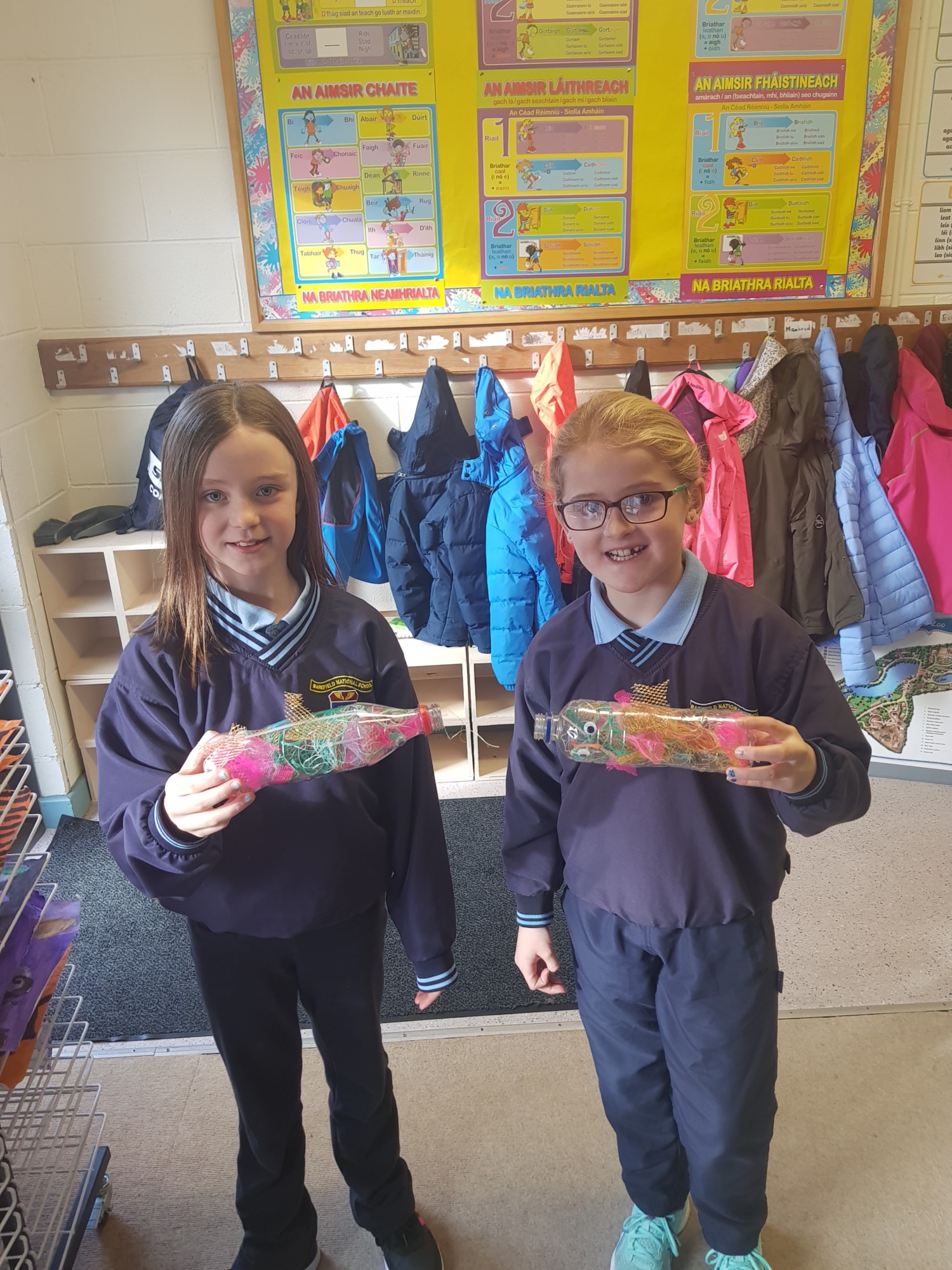 Pupils of Rang a III participated in the Explorers Education Programme and completed projects to raise awareness on the dangers of plastic in the oceans, seas and the rocky shore. Each pupil created plastic fishes using plastic collected from the seas and beaches around Clare.