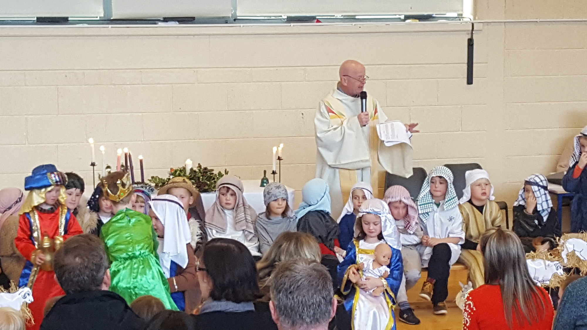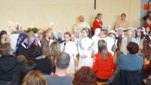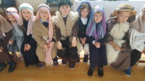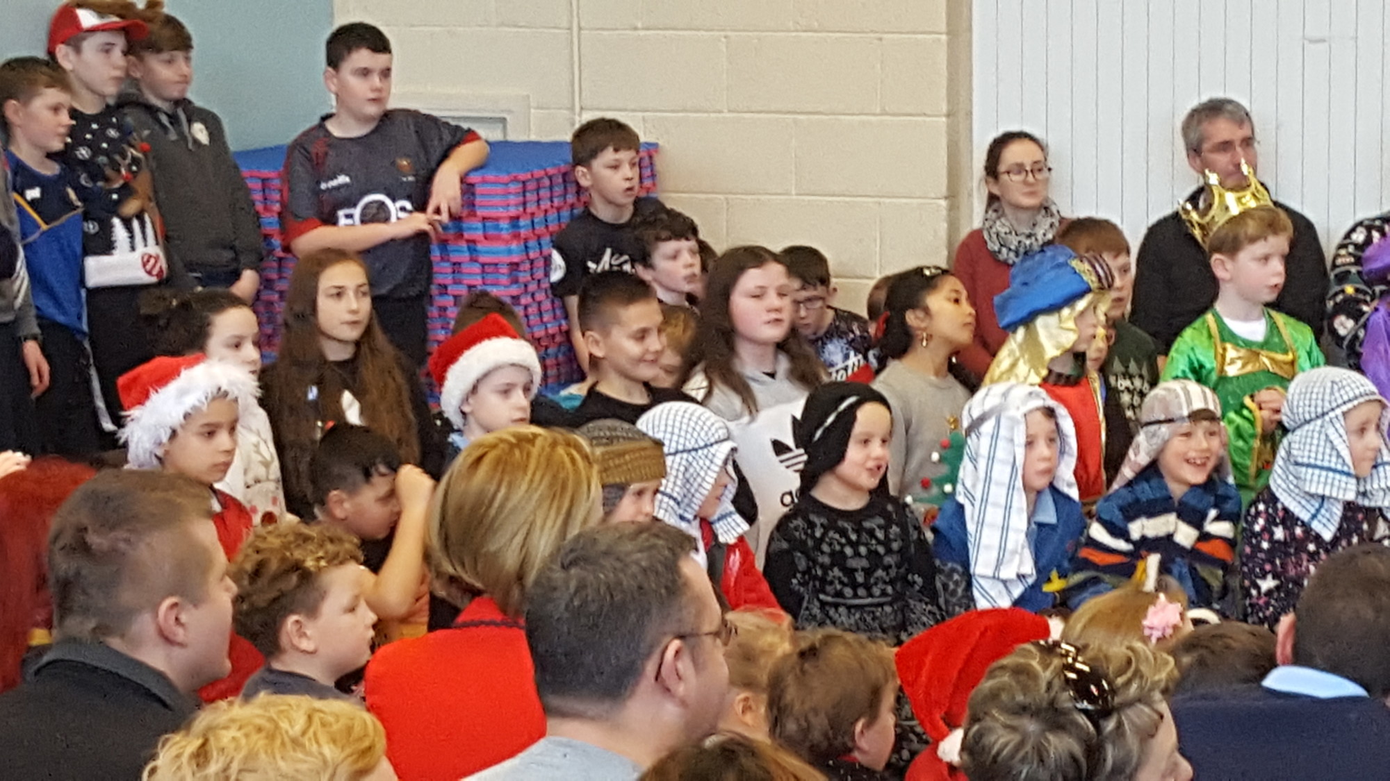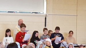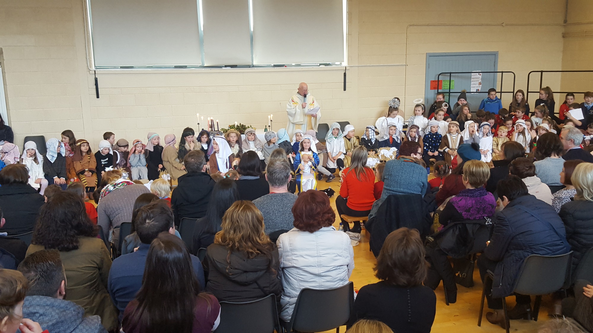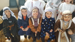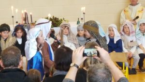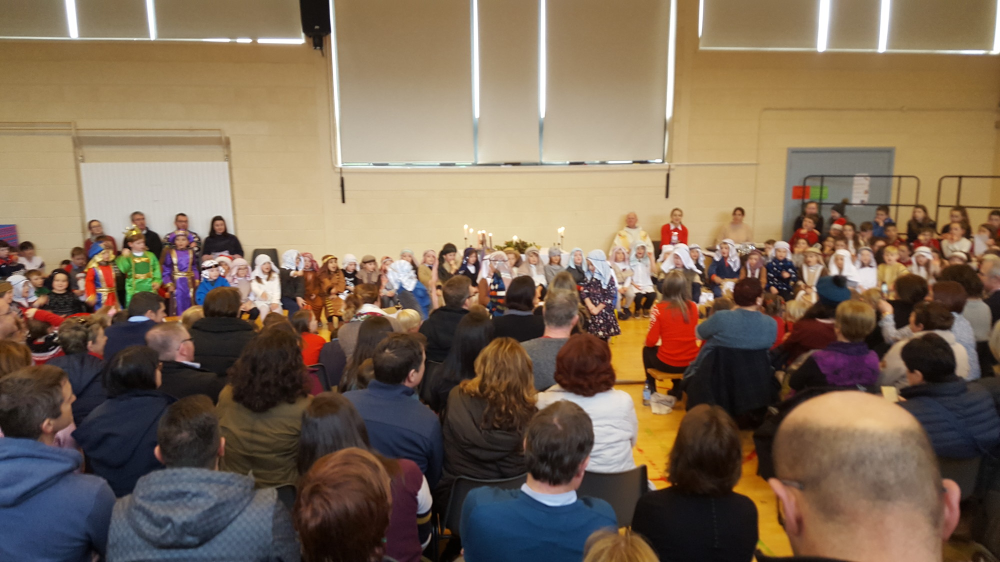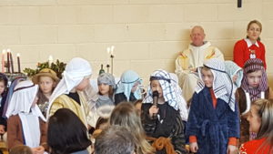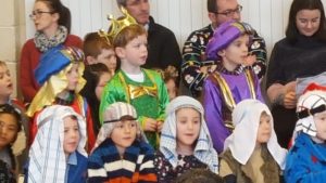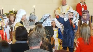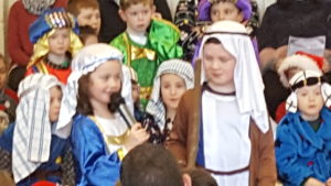 Today we had  our end of term Christmas Mass. Our Senior Infants performed The Nativity Play under the excellent direction of Ms. Daly, Ms. Power and Ms. Quinn. Well done to Ms. Moore for co-ordinating the occasion, to Ms. Corrigan for the superb Christmas performance by  our choir, to Fr. Jerry for a most meaningful Mass and to Mr. Frawley for training our Mass readers.The performance was a culmination of many weeks of hard work. They re-enacted in song and drama the birth of Jesus to a huge audience of grandparents, parents and pupils. Our pupils looked very festive in their Nativity costumes. Every pupil in our Senior Infants class played an active part. They received a huge “bualadh bos” when they were finished.  It was a very special occasion for everyone.