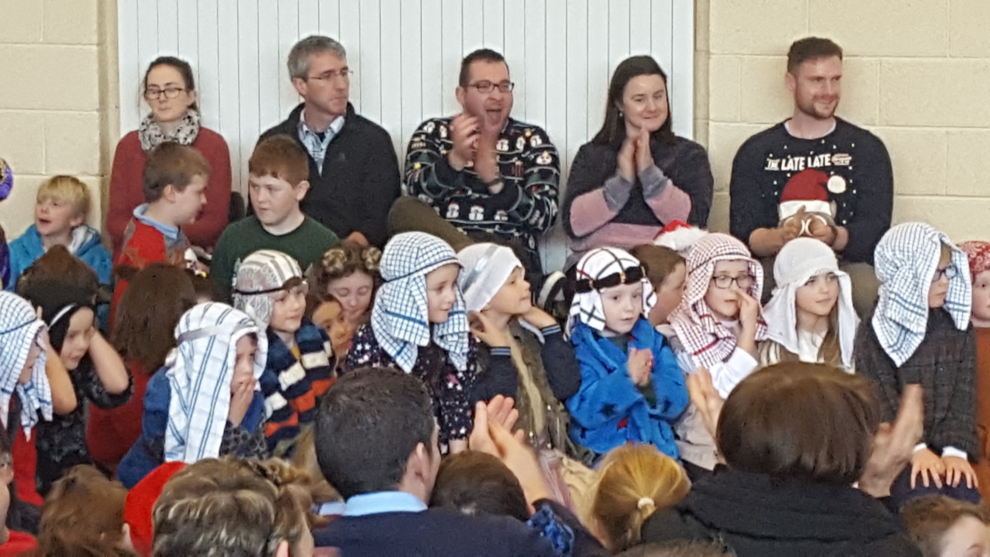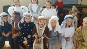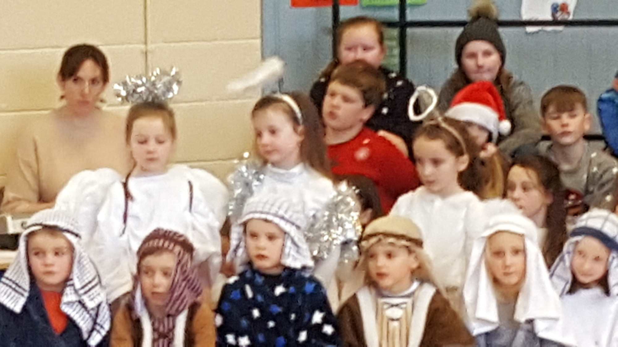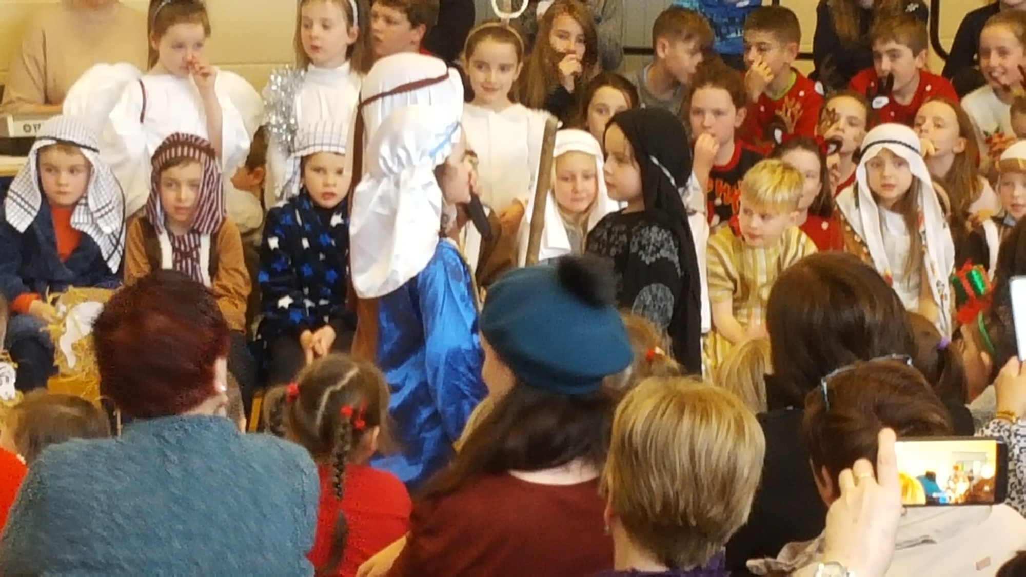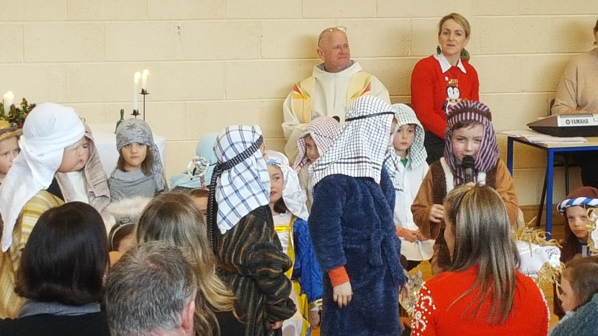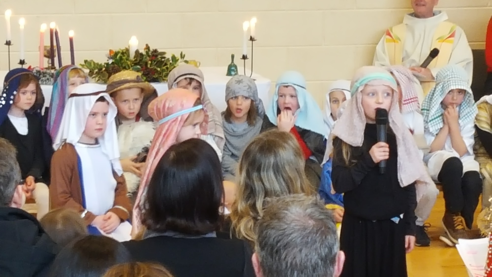 Today we had  our end of term Christmas Mass. Our Senior Infants performed The Nativity Play under the excellent direction of Ms. Daly, Ms. Power and Ms. Quinn. Well done to Ms. Moore for co-ordinating the occasion, to Ms. Corrigan for the superb Christmas performance by  our choir, to Fr. Jerry for a most meaningful Mass and to Mr. Frawley for training our Mass readers.The performance was a culmination of many weeks of hard work. They re-enacted in song and drama the birth of Jesus to a huge audience of grandparents, parents and pupils. Our pupils looked very festive in their Nativity costumes. Every pupil in our Senior Infants class played an active part. They received a huge “bualadh bos” when they were finished.  It was a very special occasion for everyone.