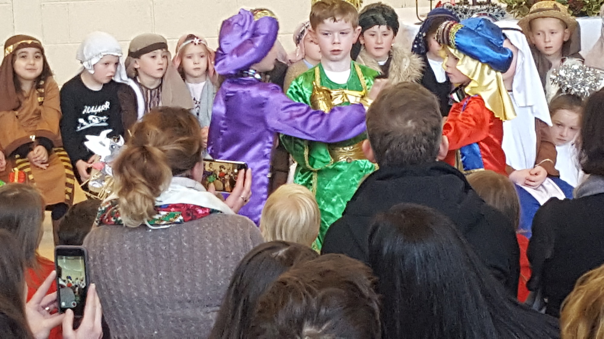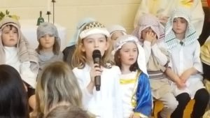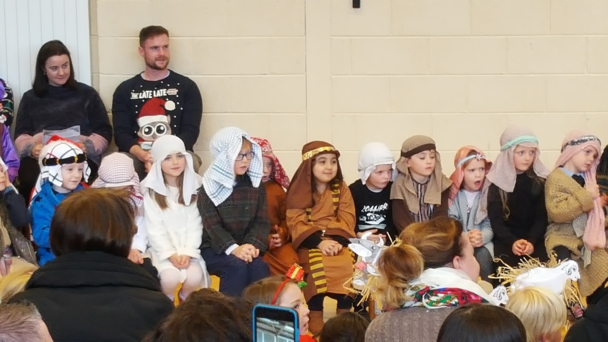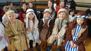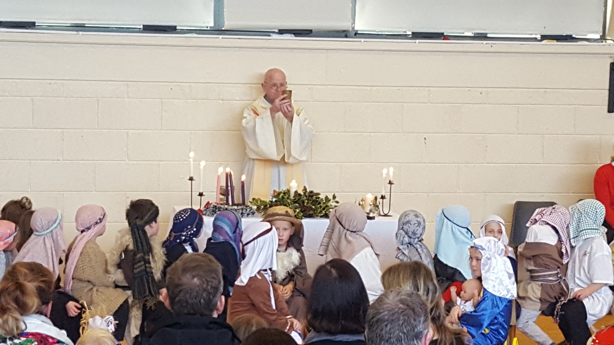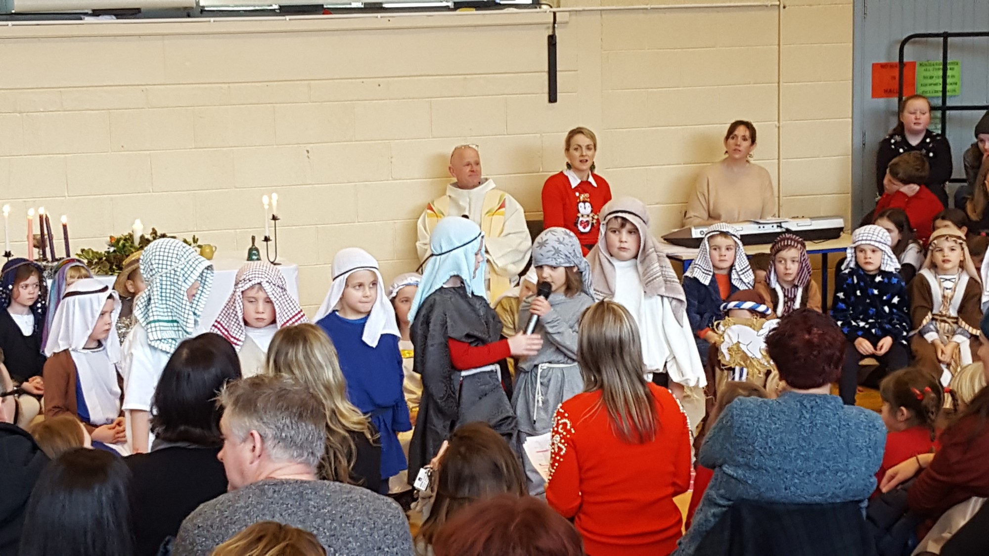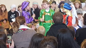 Today we had  our end of term Christmas Mass. Our Senior Infants performed The Nativity Play under the excellent direction of Ms. Daly, Ms. Power and Ms. Quinn. Well done to Ms. Moore for co-ordinating the occasion, to Ms. Corrigan for the superb Christmas performance by  our choir, to Fr. Jerry for a most meaningful Mass and to Mr. Frawley for training our Mass readers.The performance was a culmination of many weeks of hard work. They re-enacted in song and drama the birth of Jesus to a huge audience of grandparents, parents and pupils. Our pupils looked very festive in their Nativity costumes. Every pupil in our Senior Infants class played an active part. They received a huge “bualadh bos” when they were finished.  It was a very special occasion for everyone.
