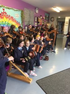 Tá Seachtain na Gaeilge tosnaithe inár scoil. Tosnaíonn gach lá le ceol iontach, aoibhinn ó bhanna ceoil Mr. Liddy. Déanann na páistí gach iarrach Gaeilge a labhairt go minic i rith an lae. Tá a lán dár ndaltaí páirteach freisin i bhFéile na hInse.